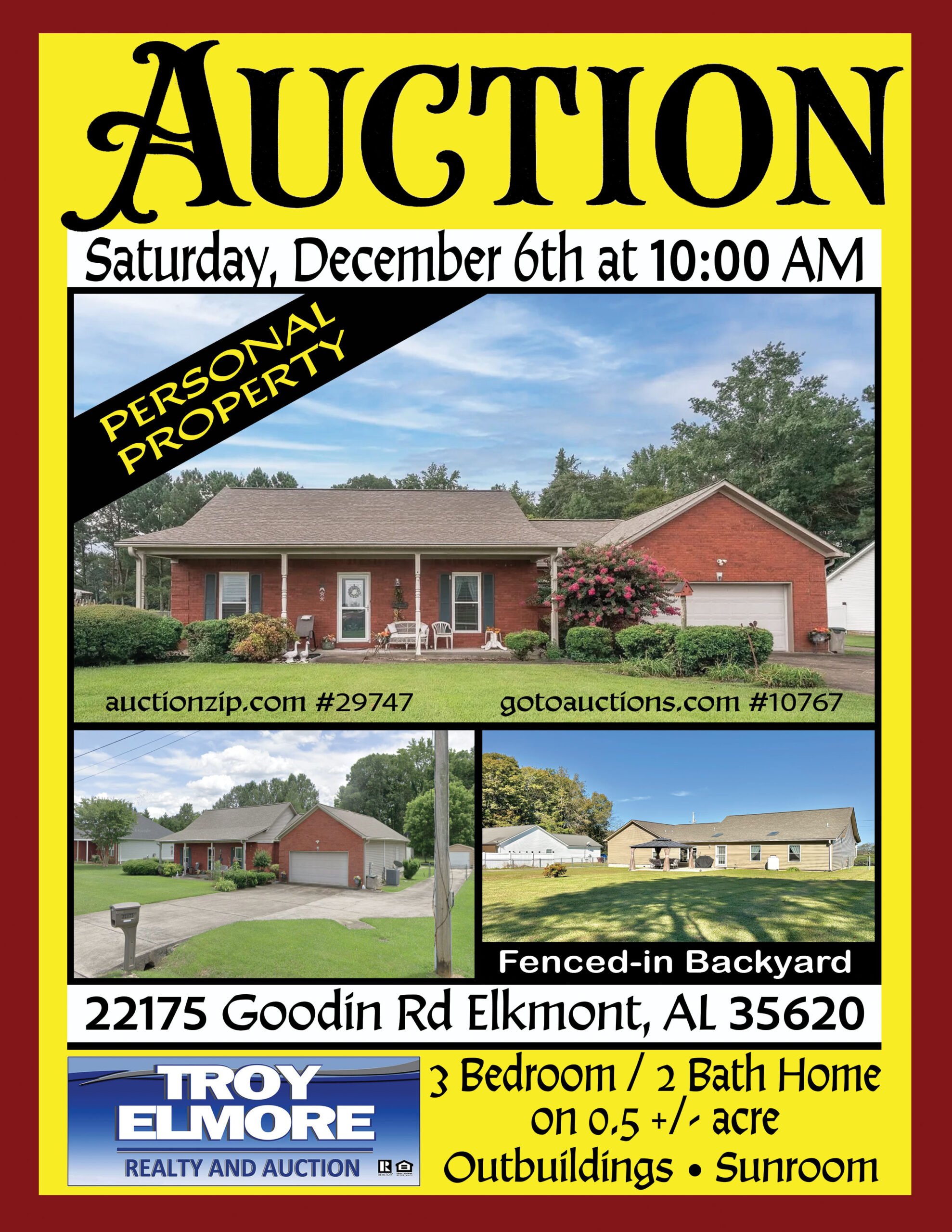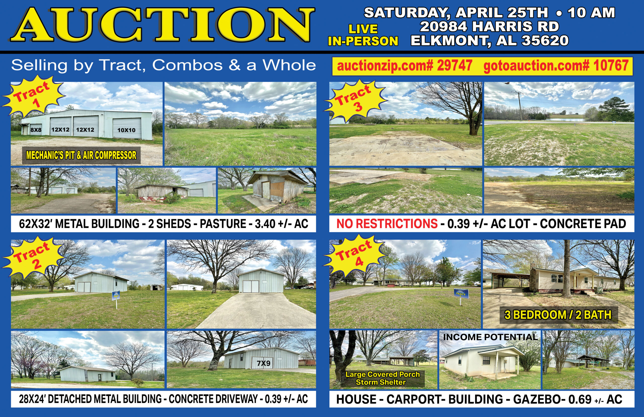 10% non-refundable earnest money required day of sale, balance due on or before 45 days at close. A 10% Buyers Premium will be added to final bid to determine ultimate final sales price. Taxes will be prorated. Possession given with deed. As in all auctions, this property is being offered in “as is where is” condition. The auction company or sellers make no warranty. Buyer purchases property based solely on their own inspection and estimation of value. In all instances, the auctioneer is acting as agent for the seller. Special Note: Homes built prior to 1978 are subject to have lead base paint. In accordance with federal law, any potention buyers will be allowed to have the home inspected 10 days to the sale at their expense. Announcements made the day of the sale take precedence over all printed material.